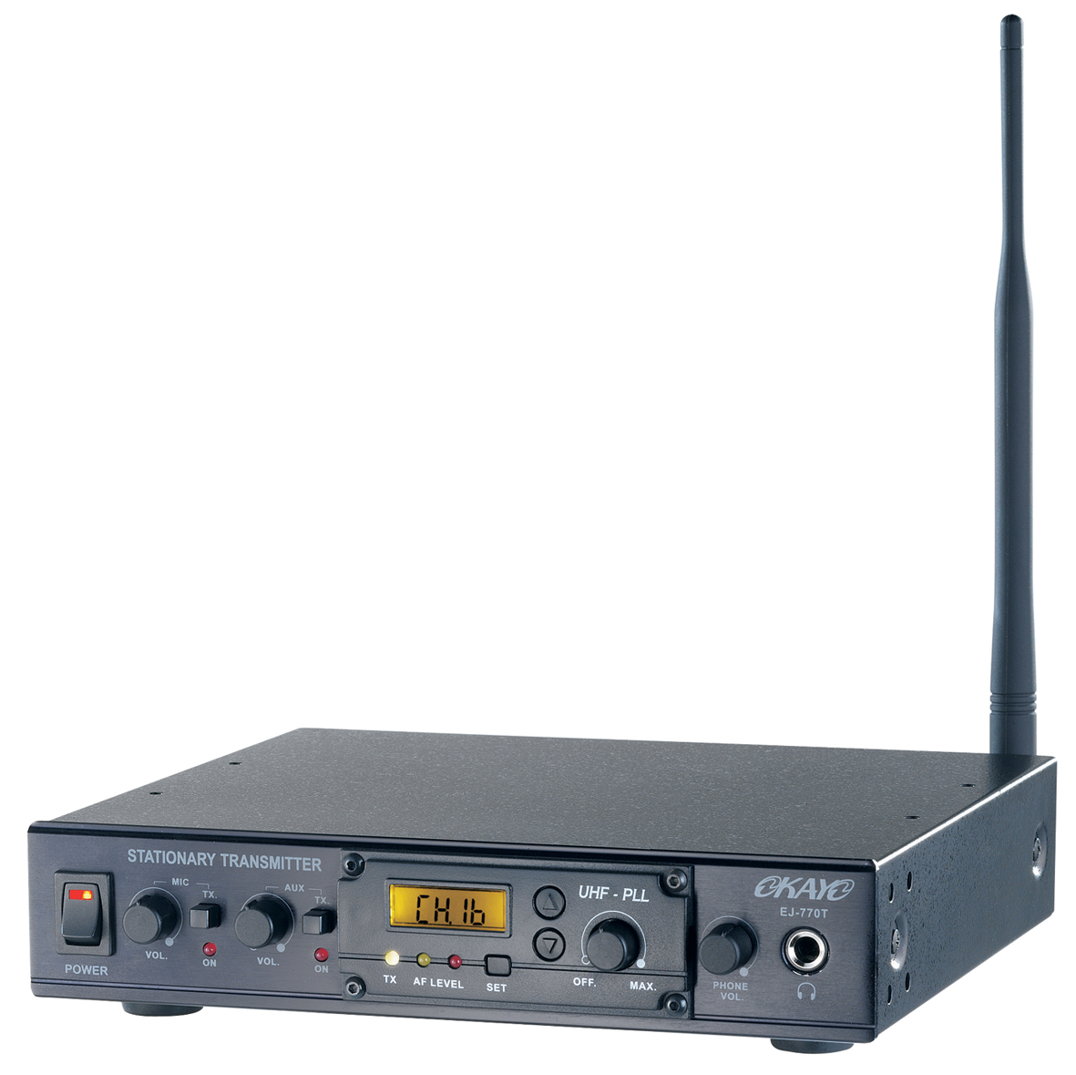 C’est un émetteur fixe 1/2U soit 220 x 215 x 44 mm alimenté par un transformateur DC 12V. Il possède 16 fréquences sélectionnables avec un choix de puissance d’émission entre 10 et 50 MW. Le niveau audio d’émission est réglable en façade par un potentiomètre rotatif et cinq voyants affichent ce même niveau, et peut être écouté par une entrée casque.